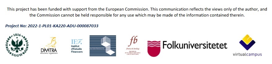 We are glad to announce that in November 2022, we launched the Erasmus+ Learning by experiencing Escape Rooms: Financial Literacy for Adults (FLER) project’s work. The project’s consortium consists of 7 institutions: coordinator – Warsaw University of Life Sciences (WULS-SGGW) from Poland, Dimitra Education & Consulting S.A. (DIMITRA) from Greece, Finance & Banking, Associazione per lo Sviluppo Organizzativo e delle Risorse Umane (EFFEBI) from Italy, Eurodimensions from Malta, Folkuniveristetet Uppsala from Sweden, Fundació Privada Institut d’Estudis Financers (IEF) from Spain, and Virtual Campus from Portugal.