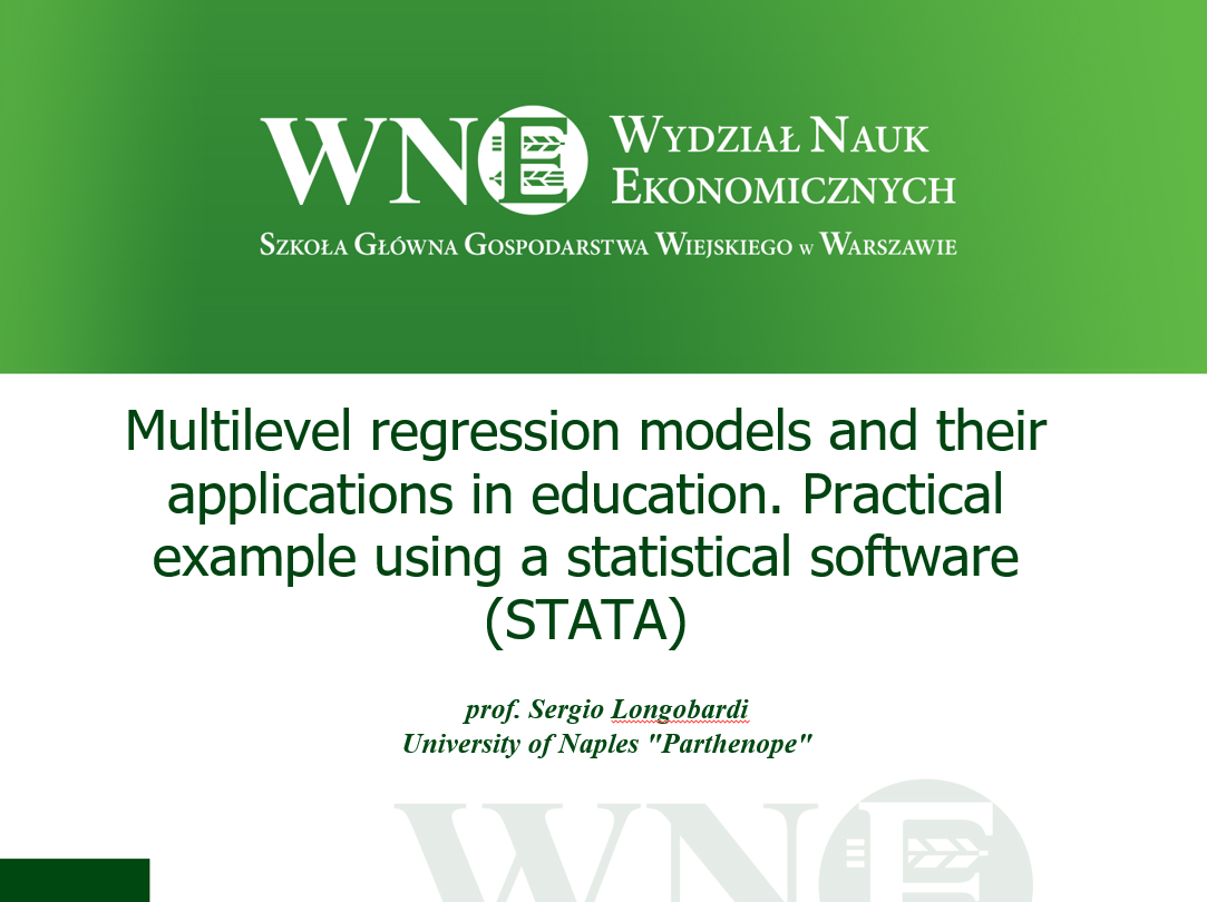 We cordially invite to the scientific seminar that will take place on September 10, 2019 at 9:30 in room 116, building 7. Prof. Sergio Longobardi from the University of Naples “Parthenope” will deliver a paper entitled: “Multilevel regression models and their applications in education. Practical example using a statistical software (STATA)”.