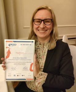 Dr inż. Anna Milewska została wyróżniona za aktywne wspieranie działań na platformie edukacyjnej Score Hunter w ramach Programu Edukacyjnego Nowoczesne Zarządzanie Biznesem. Wyróżnienie zostało wręczone na Ogólnopolskim Spotkaniu Koordynatorów i Wykładowców Programu Nowoczesne Zarządzanie Biznesem. Spotkanie odbyło się w ramach Krajowego Forum Edukacji Ekonomicznej pod patronatem Marszałek Senatu Rzeczpospolitej Polskiej Pani Małgorzaty Kidawy-Błońskiej, Rektora Szkoły Głównej Handlowej – Prof. dr hab. Piotra Wachowiaka, Komitetu Organizacyjnego Roku Edukacji Ekonomicznej oraz Warszawskiego Instytutu Bankowości.