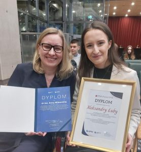 Miło nam poinformować, że Pani lic. Aleksandra Łuba z Wydziału Ekonomicznego SGGW zdobyła wyróżnienie specjalne w konkursie Fundacji Giełdy Papierów Wartościowych w Warszawie S.A. na najlepszą pracę licencjacką, magisterską i doktorską o nagrodę Prezesa Zarządu GPW. Praca została wyróżniona przez PFR Portal PPK. Promotorką wyróżnionej pracy była Pani dr Anna Milewska z Katedry Finansów Instytutu Ekonomii i Finansów SGGW.