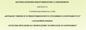 Katedra Ekonomii Międzynarodowej i Agrobiznesu Instytutu Ekonomii i Finansów SGGW ma zaszczyt zaprosić Państwa na X Konferencję Naukową pt. „Aktualne tendencje w międzynarodowych stosunkach gospodarczych” pod przewodnim tematem „SZTUCZNA INTELIGENCJA I NOWOCZESNE TECHNOLOGIE W GOSPODARCE”.