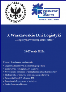 Serdecznie zapraszamy do udziału w konferencji naukowej X Warszawskie Dni Logistyki: Edukacja-Nauka-Biznes pt.: „Logistyka – wczoraj, dziś i jutro”. Konferencja odbędzie się w dniach 26-27 maja 2022 r. Szczegółowe informacje znajdują się na stronie http://wdl.sggw.pl/