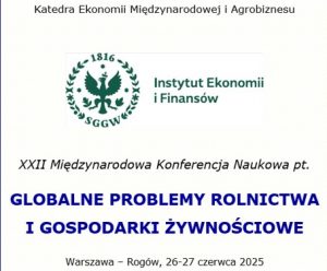 Katedra Ekonomii Międzynarodowej i Agrobiznesu Instytutu Ekonomii i Finansów SGGW ma zaszczyt zaprosić Państwa na XXII Międzynarodową Konferencję Naukową pt. „Globalne Problemy Rolnictwa i Gospodarki Żywnościowej”. Celem konferencji jest integracja środowiska ekonomistów zajmujących się problematyką związaną z szeroko rozumianym sektorem rolno-żywnościowym oraz stworzenie forum wymiany myśli i doświadczeń zdobytych w trakcie prowadzonych badań naukowych.